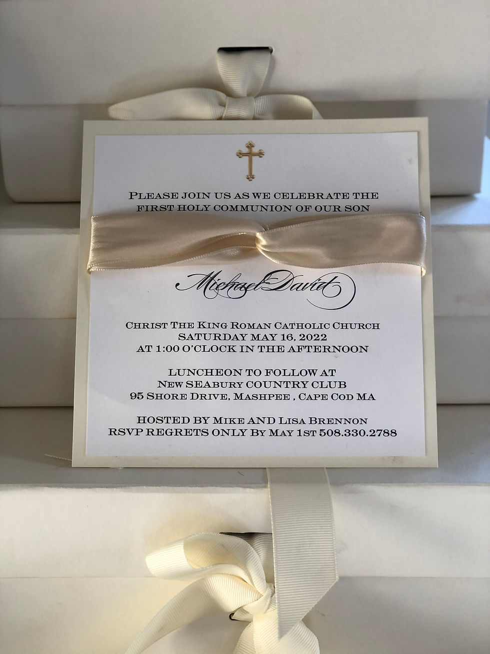 Laurel Wreath Monogram Photo Baptisim Invitation set of 25